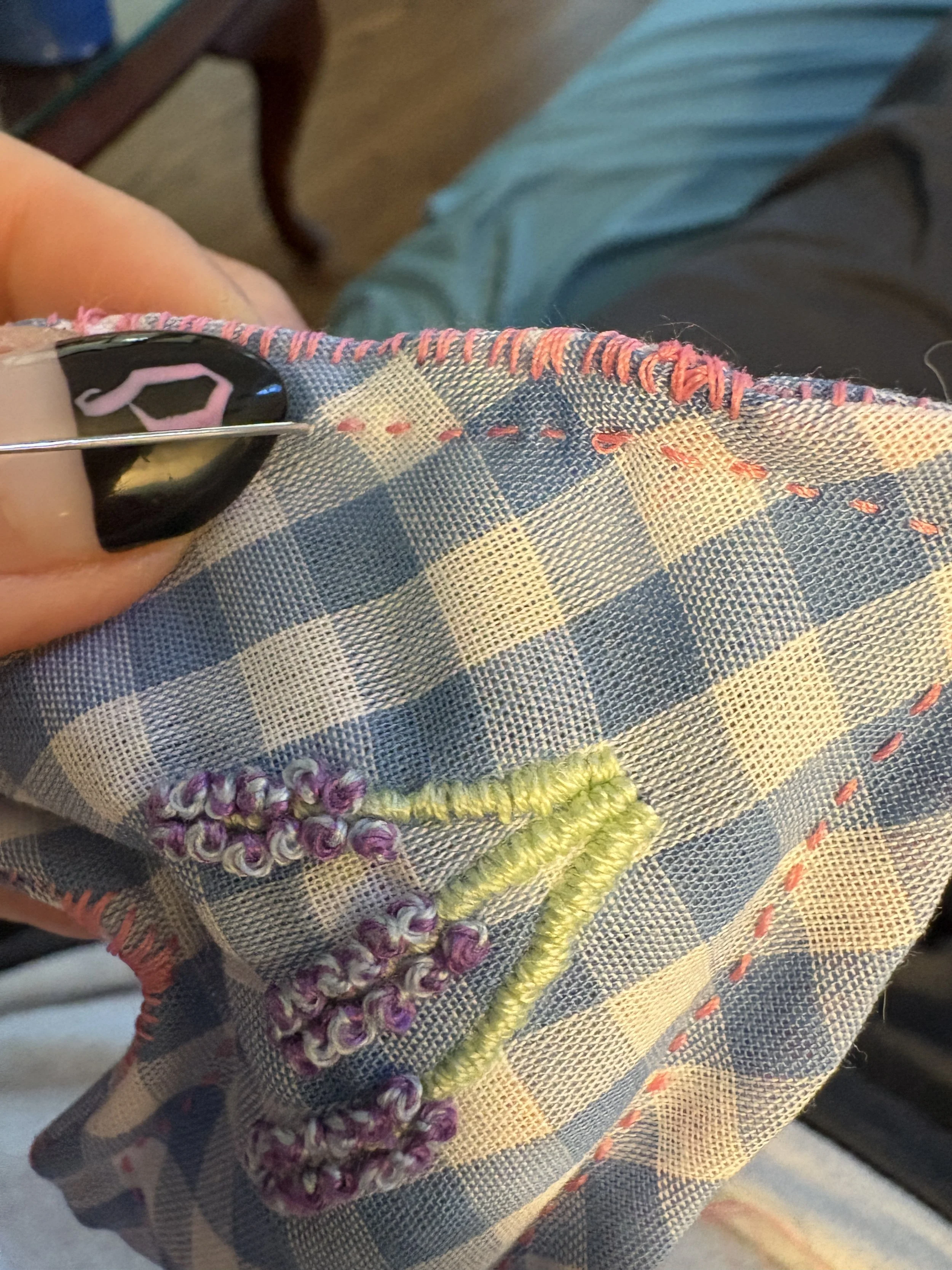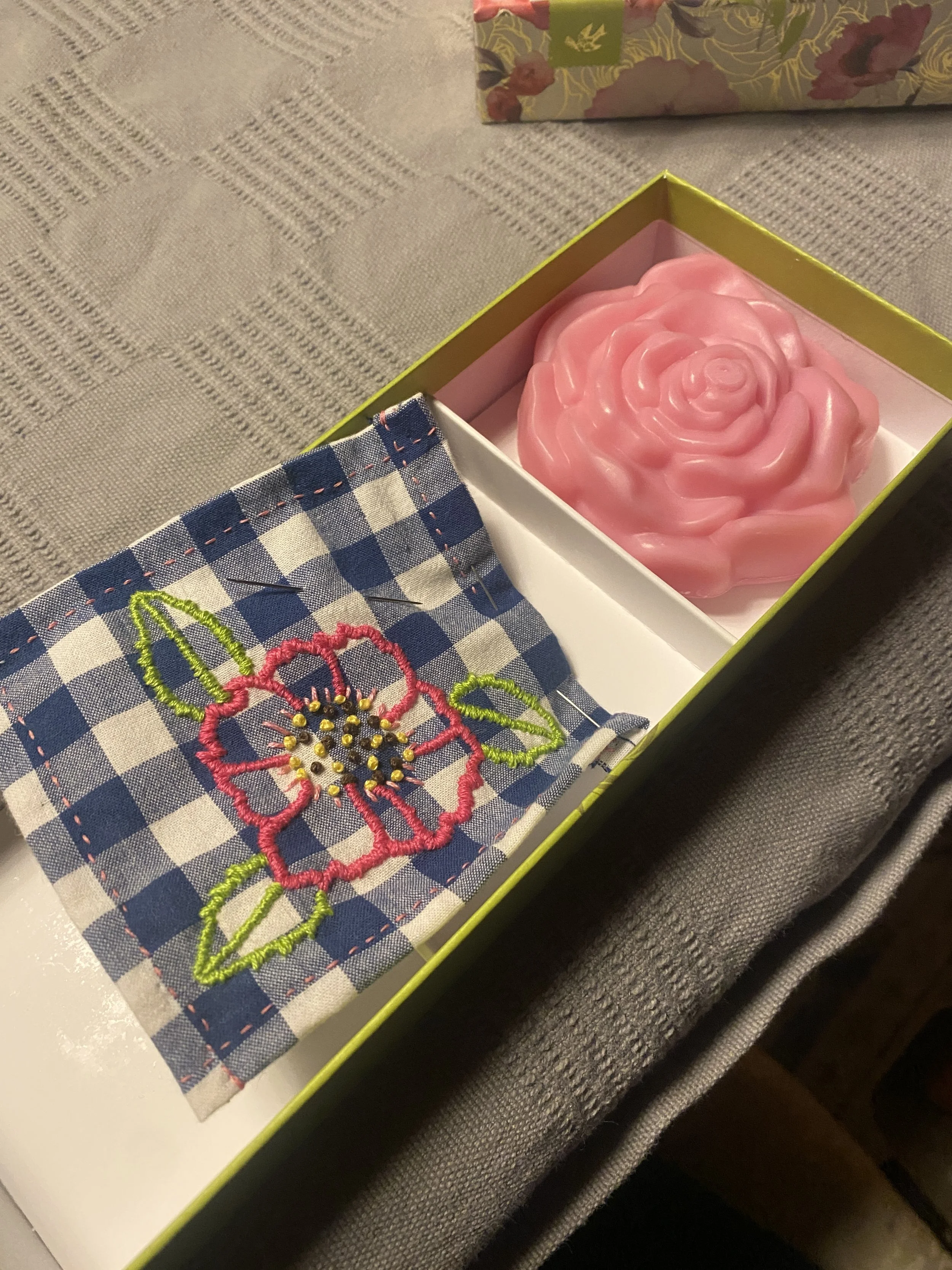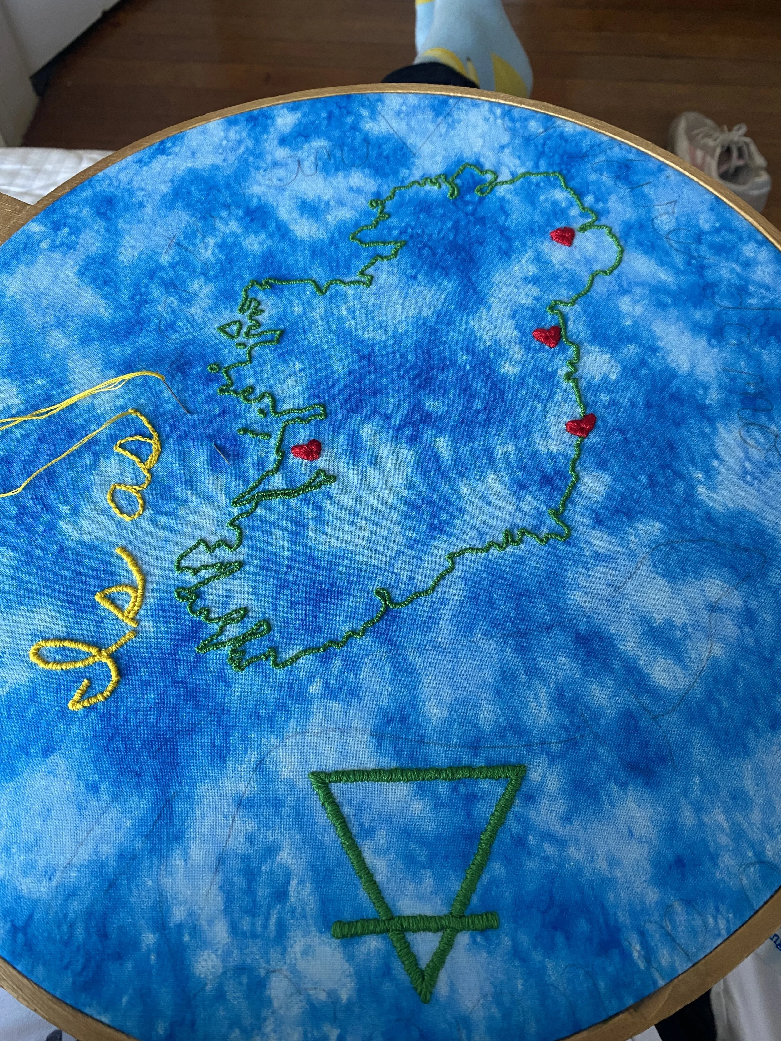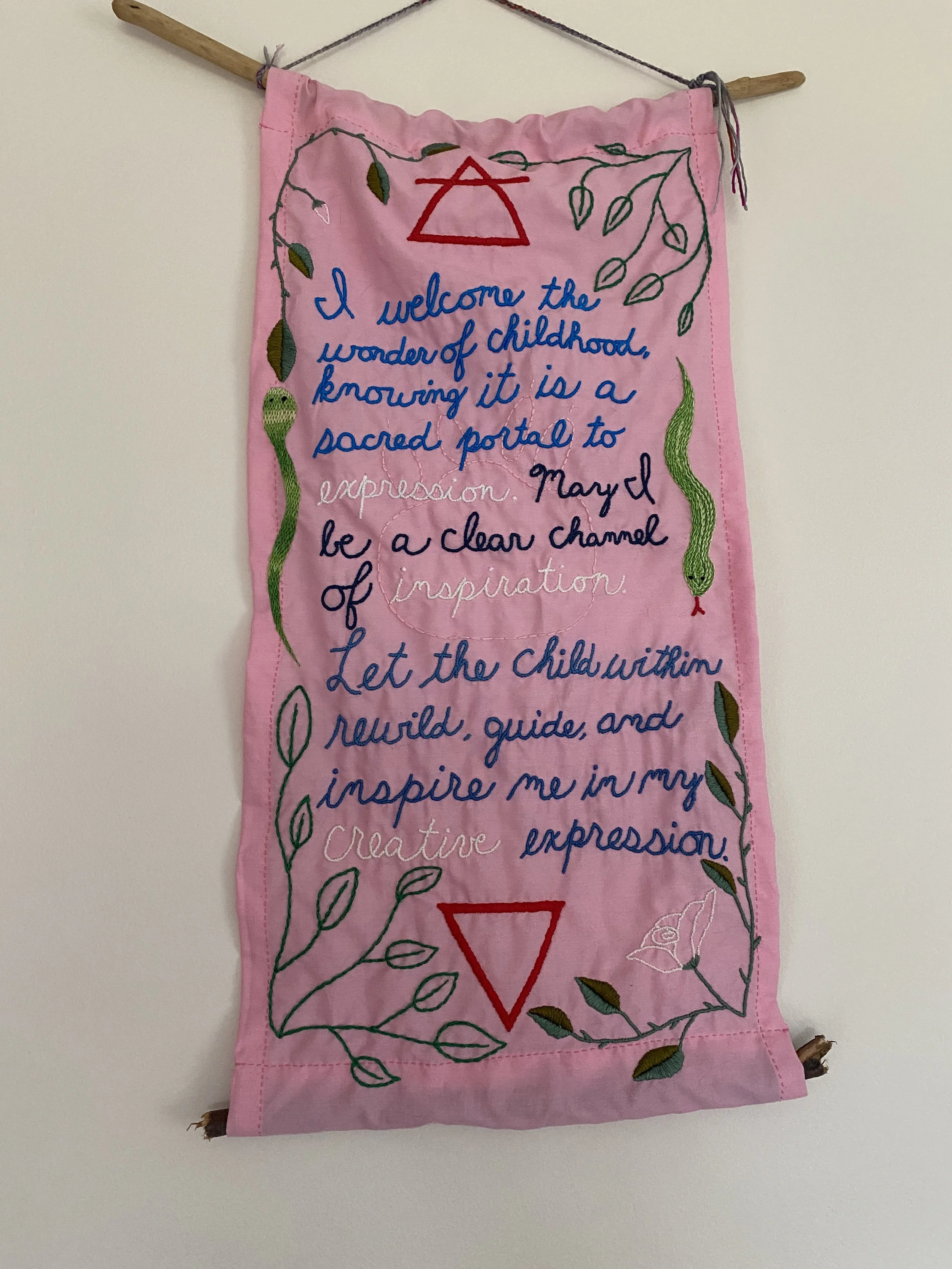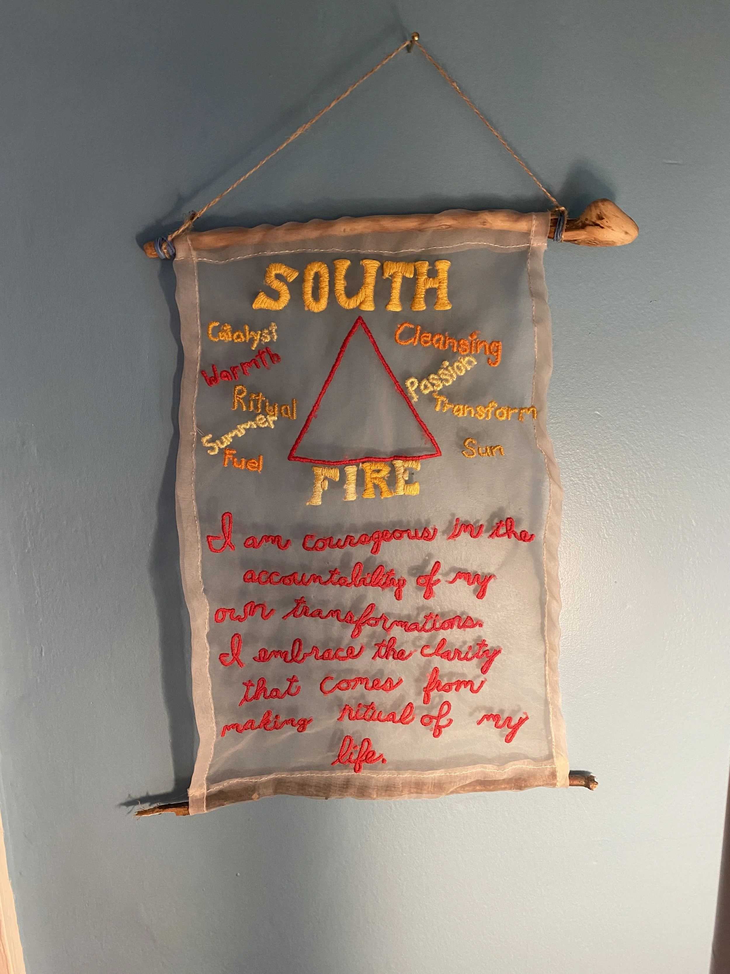 I embroider spells, using fabric, needle, and thread to create space in people’s lives for transformation, intention, emotion, and access. Each spell is lovingly hand-crafted in consultation with my ancestors and divines. What I listen to and experience while creating a spell imbues the thread with magical intentions. As the cloth passes through my hands, as the needle makes its way up and down through the fabric, the creation comes out on the other side imbued with intention and deep meaning. The final result of a spell is placed in your hands, each with an instruction for care, display, use.